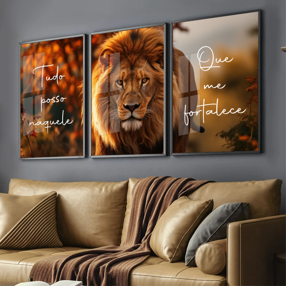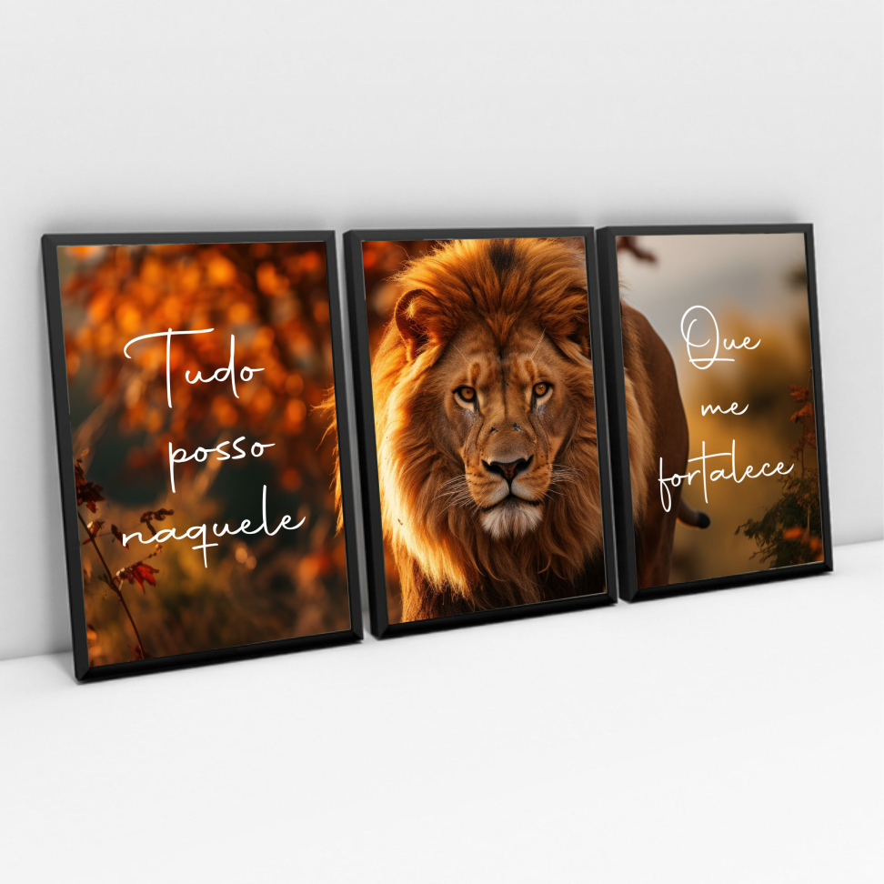 Trio de quadros leão com frases Preço sob consulta PEDIR POR WHATSAPP Produto adicionado ao carrinho Continuar comprando Ir para o carrinho